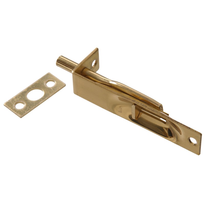 Product DescriptionFlush Bolts mount to wood or french doors and are designed to secure the door to the door jamb. A recess must be bored on the door for bolt installation. Bolt engages and disengages by "spring action" when the lever is pressed. Includes mortise strike and mounting hardware.From the ManufacturerFlush Bolts mount to wood or french doors and are designed to secure the door to the door jamb. A recess must be bored on the door for bolt installation. Bolt engages and disengages by "spring action" when the lever is pressed. Includes mortise strike and mounting hardware.