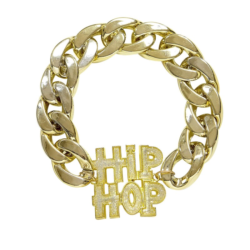 - It is composed of several gold-coloured links and bears the lettering "HiP HoP"