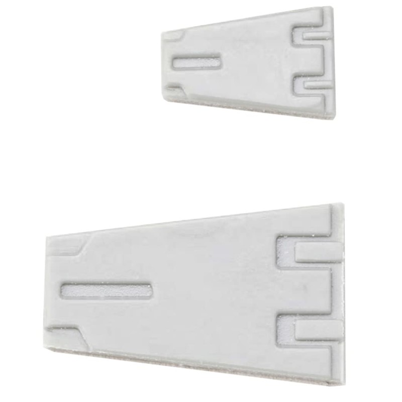 - Size (W x H x D): 2.6 x 3.3 x 0.08 inches (65 x 85 x 2 mm); Large: Upper Width: 0.2 inches (4.3 mm); Bottom Width: 0.3 inches (7 mm); Length: 0.4 inches (11.4 mm); Small: Top Width: 0.1 inches (2.6 mm); Bottom Width: 0.2 inches (4 mm)