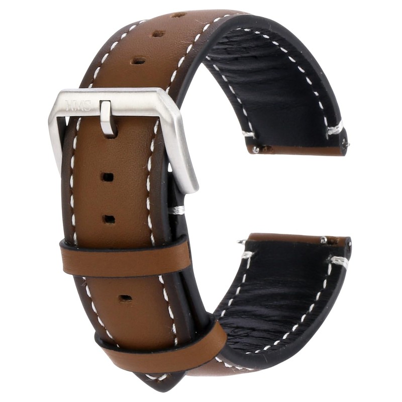 HMS, Classic Grant Leather Watch Strap, Quick Release Replacement Band (Brown, 22mm)