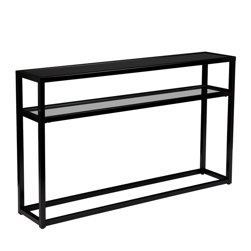 Long and lean! The Baldrick Console Table makes smart use of small spaces or open floor plans. Clean, linear frame and glass shelf bring a light footprint with major functionality to the table. Welcome guests at the door, host movie night beneath your big screen, or show off your favorite treasures anywhere. Three in one for three times the fun!.