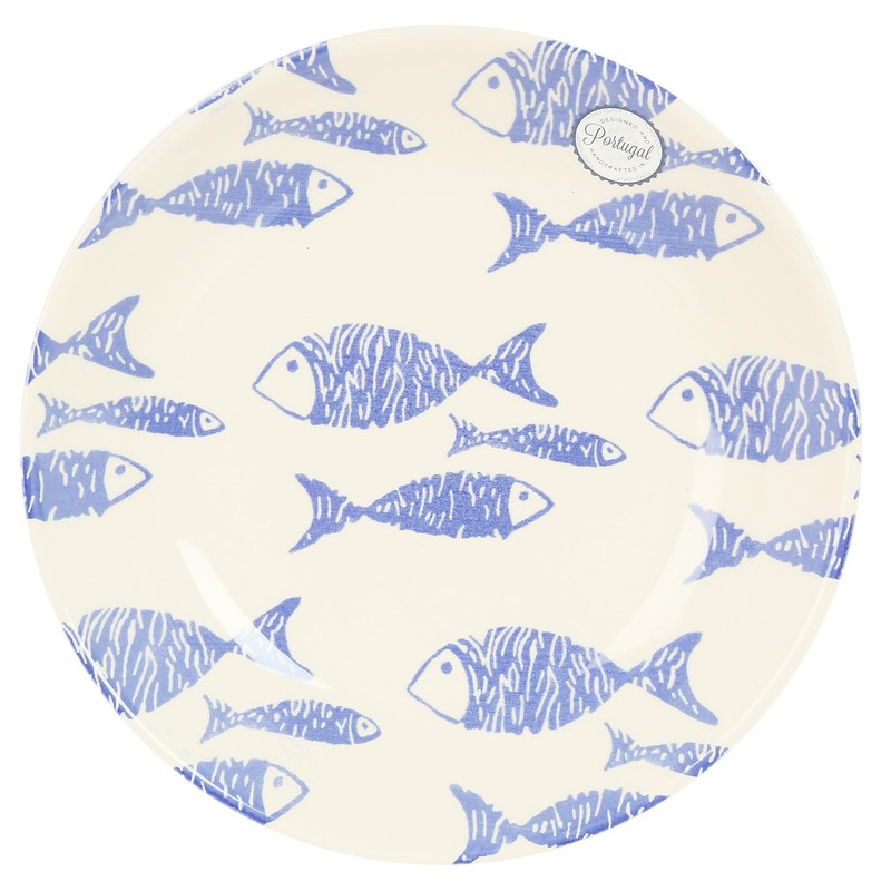 Home Essentials 9x2 Fish Print Dinner Bowl One Size Blue
