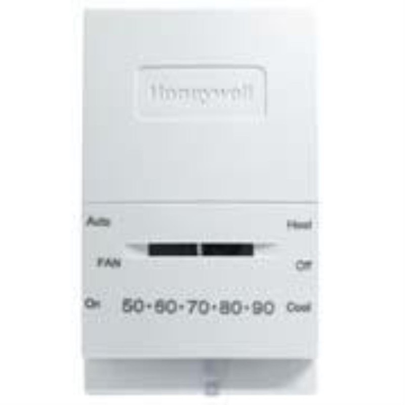 Honeywell Heat / Cool Thermostat. 24-30 VAC; 3 wire 50F-90F temperature range Integral switches control system and fan switching Mounts directly on wall or vertical outlet box using mounting plate Mercury free thermostat for control of single stage low voltage heating/cooling systems Heat / Cool Thermostat. HONEYWELL VERTICAL HEAT/COOL STAT. WITH FAN/AUTO & HEAT/COOL SWITCHES.