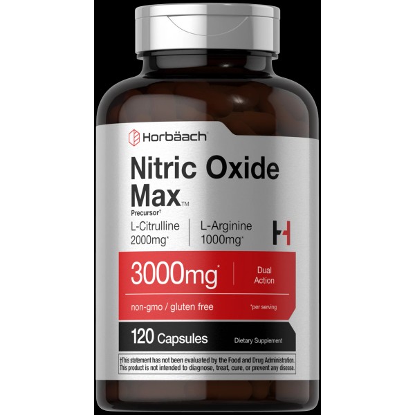 Horbäach Nitric Oxide Supplement | 3000mg | 120 Capsules | Pre Workout | by Horbaach