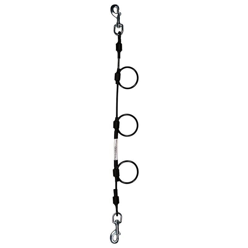 Boost productivity by bathing several compatible pets at the same time. Our heavy duty, chew resistant cable tie-out allows complete control of up to three dogs or cats at once to maximize the potential of your bathing facilities.