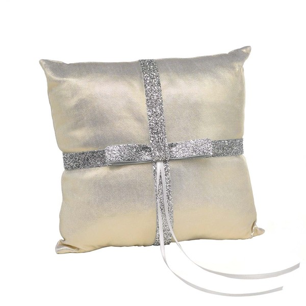 - Gold metallic fabric pillow to carry rings down the aisle with style