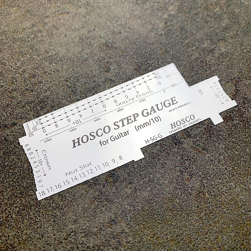STEP GAUGES have 3 functions in 1 tool designed and invented for factories, music shops, repair shops and guitar tech! Size : 83 x 33 x 0.1mm Material : Stainless steel Size : 83 x 33 x 0.1mm Scale : Metric (mm/10) 1=0.1mm To protect this thin and precise tool, the Step Gauges come with a stylish aluminum case( 93 x 60 x 5mm ).