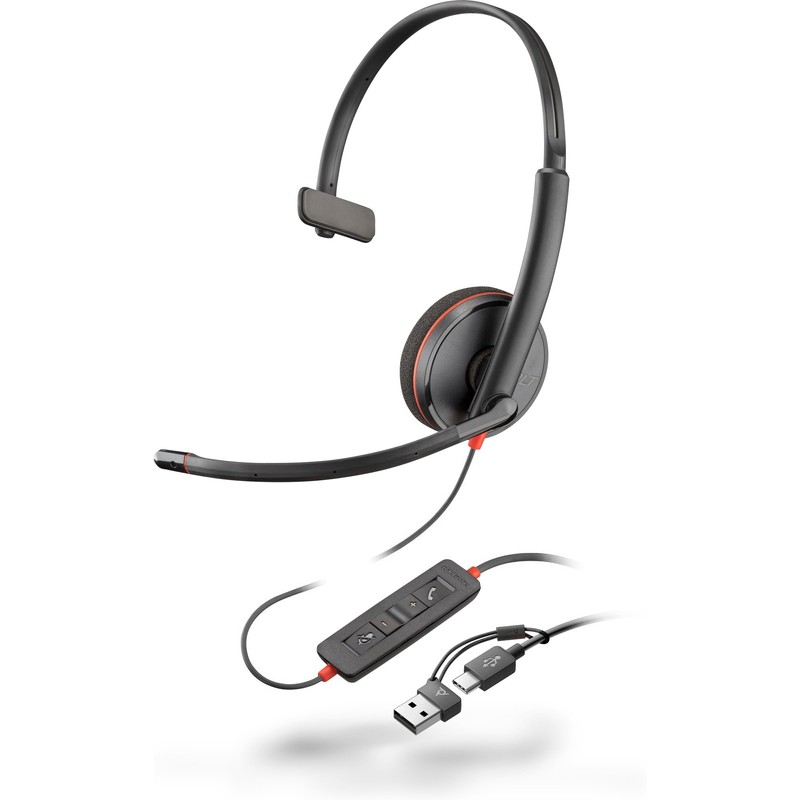 HP POLY Blackwire 3210 Monaural USB-C Black Headset +USB-C/A Adapter (Bulk)