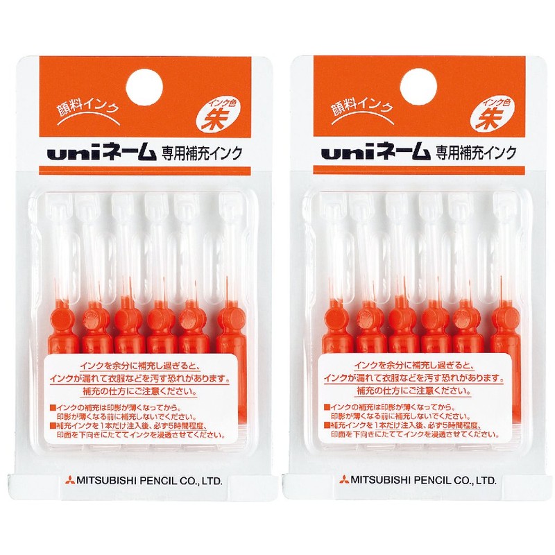 三菱鉛筆 補充インク ユニネーム専用 HUB-303 朱色 6P×2個