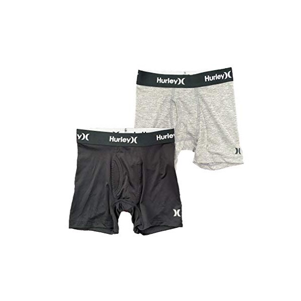 Hurley Boys' Classic Boxer Briefs (2-Pack), Grey/Black, M
