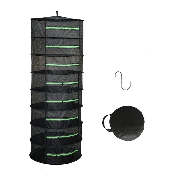 HYDGOOHO Drying Rack 8 Layer Dryer 2ft Black Mesh Green Zipper