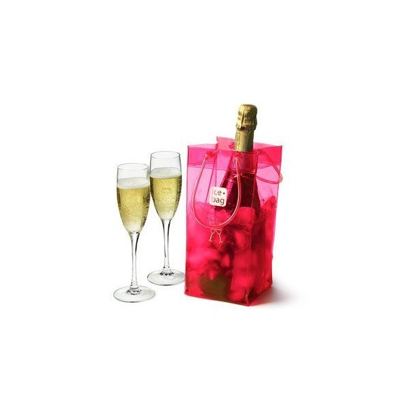 ICE BAG Collapsible Wine Cooler Bag Perfect for parties, picnics and restaurant service. Portable(sturdy loop handles), strong and durable. Just add ice and water, insert bottle and you are ready to go. Translucent Pink, Purple, Red, Blue and Clear.