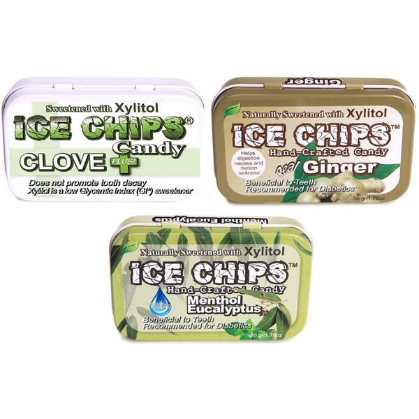 ICE CHIPS Candy 3 Pack Assortment (Clove, Ginger, Menthol Eucalyptus)