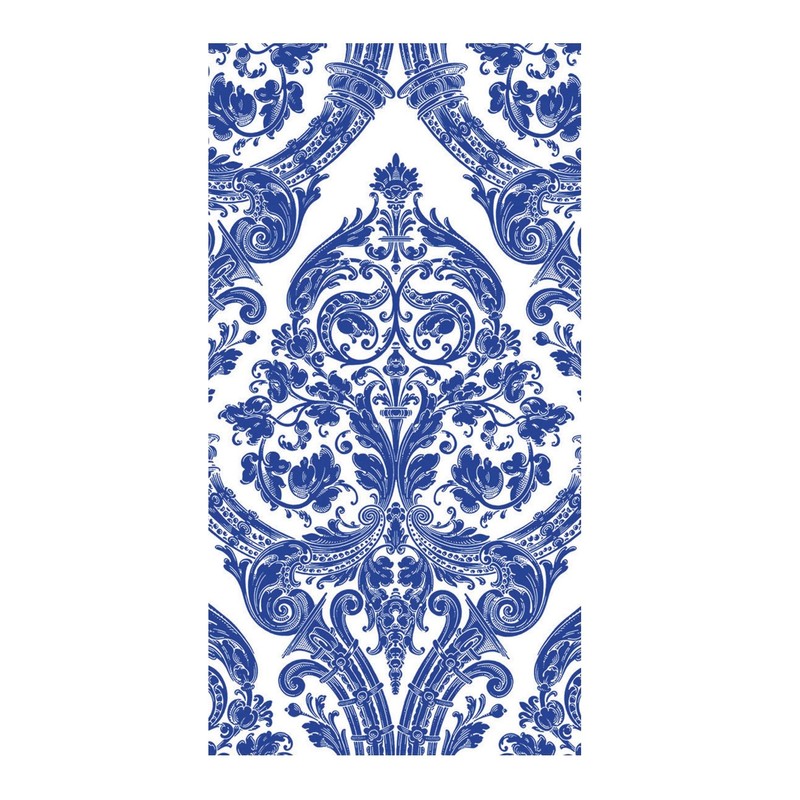 - El estampado de grandeza es azul oscuro sobre un fondo blanco