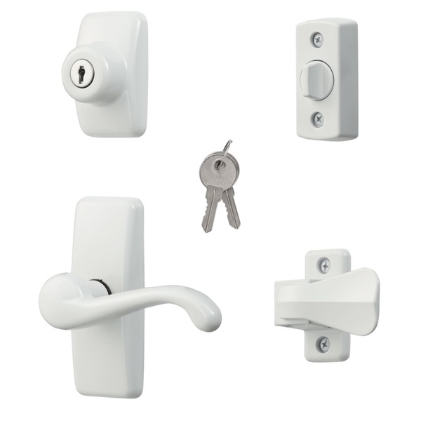 Ideal Security GL Door Lever Set with Keyed Deadbolt Lock for Storm and Screen Doors, White (4-Piece Set)