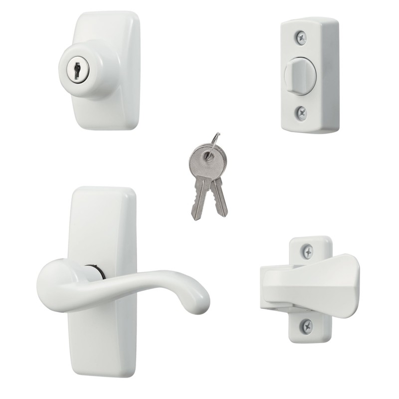 - Included Keyed Deadbolt Lock: This screen door handle easily locks from the inside with the included deadbolt and opens from the outside with a key for more security; Includes lever handle, interior latch, and keyed deadbolt, components, and hardware