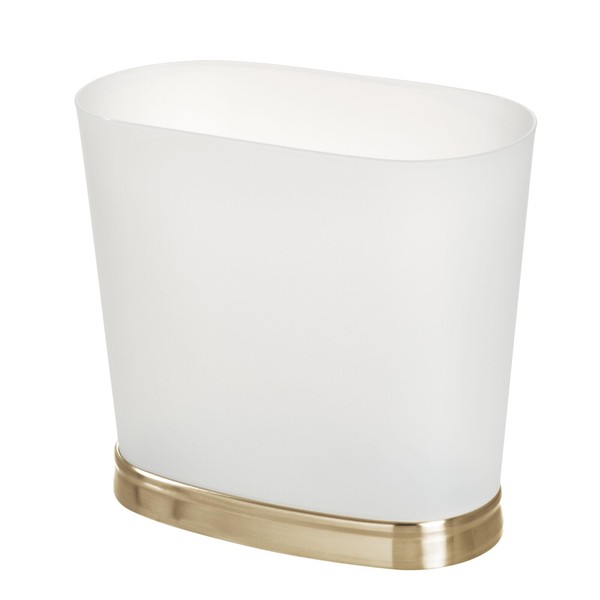 iDesign Slim Bathroom Trash Can, Small Plastic Garbage Can for Bedroom, Office, Desk, or Dorm, Frost/Soft Brass