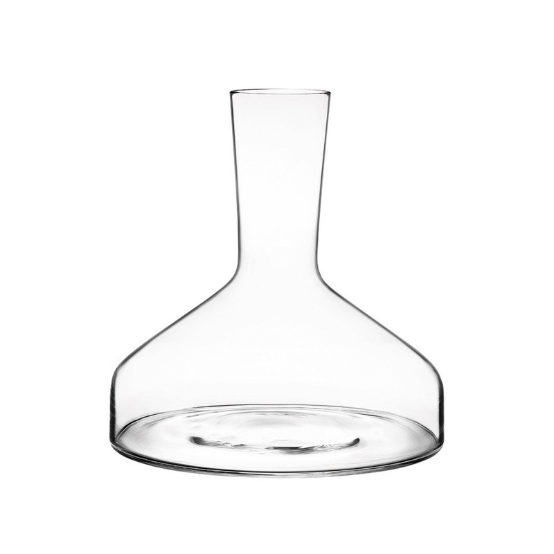 Less is truly is more with Iittala's modern 8-inch decanter. Designed by Antonio Citterio in 2004, the simple, mouth-blown shape creates a sense of space and volume perfect for showcasing a favorite vintage. Starting with a long neck, the clear glass flares out to create a round vessel that allows wine to breathe and exhibit its unique qualities. For Antonio Citterio admirers, this piece is fun to mix with his other Iittala pieces. It also suits many contemporary dining and bar decors. The graceful decanter holds two quarts and goes safely into the dishwasher-perfect for a busy entertainer. It is made in Finland. _\--Kara Karll_