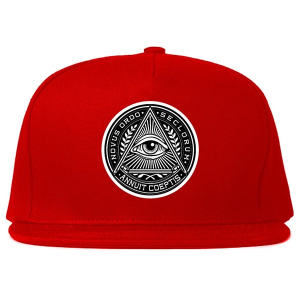- PRODUCT: Our Illuminati Eye Triangle Snapback Hat Cap Red is a classic style basbeball cap with a flat brim featuring a unique graphic print design on front by clothing brand KINGS OF NY.