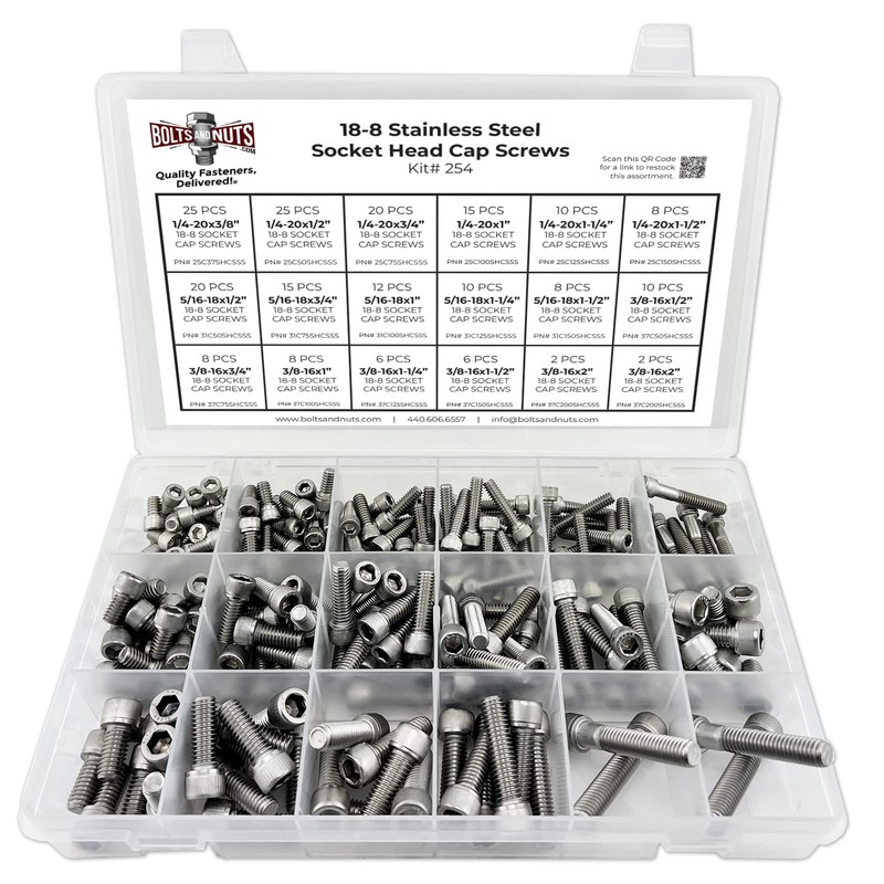 Inch 18-8 Stainless Steel Socket Cap Screws Coarse Assortment - 211 PCS