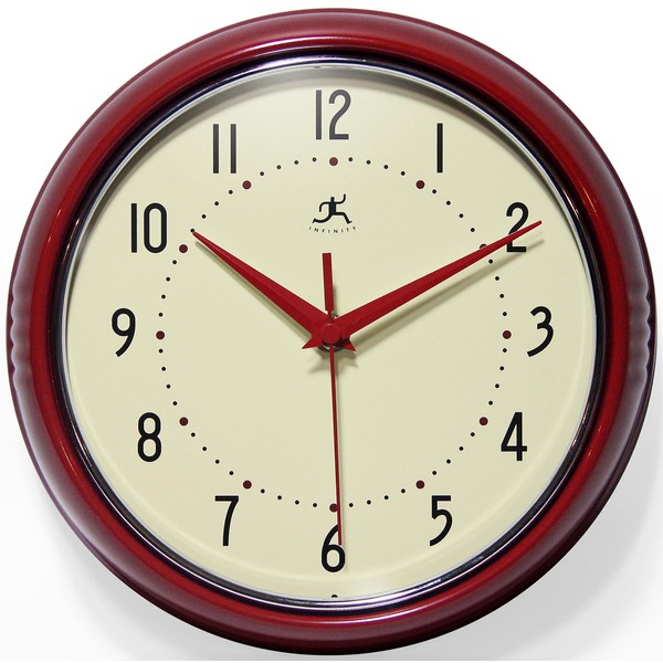 Infinity Instruments LTD. Retro 15 inch Mid Century Modern Kitchen Diner Wall Clock Quartz Movement Retro Wall Clock Decorative (Red)