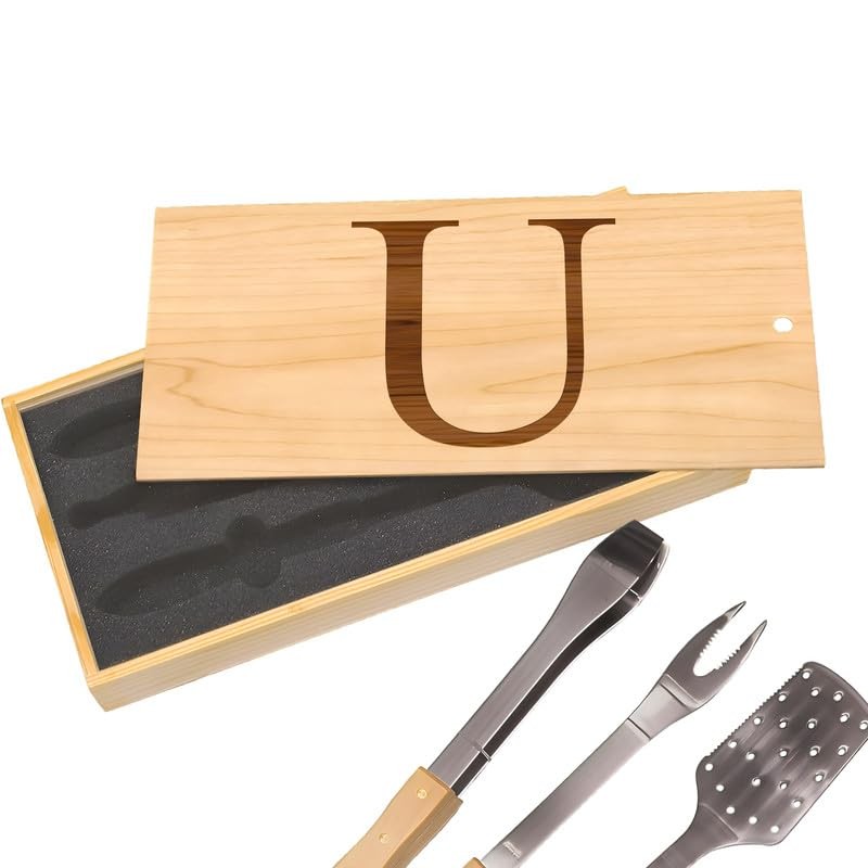 - Initial U: Uncover the ultimate gift for the grill enthusiast with our BBQ Set, comprising a stainless steel spatula, tongs, and fork. The beautifully engraved box with the initial U adds a personalized touch, making it a unique and thoughtful gift.