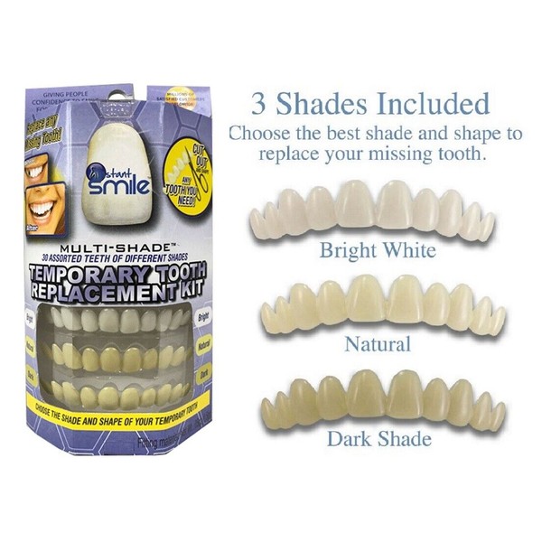 INSTANT SMILE MULTI-SHADE TEMPORARY REPLACEMENT TEETH KIT 3 SHADES 30 TEETH