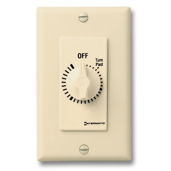 These energy saving timers use no electricity to operate. These timers are designed to replace any standard wall switch, single or multi-gang, and automatically limit the "ON" time of fans, lights, motors, heaters and other energy consuming loads. Supplied with a molded ivory time dial plate designed to fit either toggle or decorator style switch plates; single or multi-gang with no field modifications required to fit either style switch plate. Time saving "up front" terminal connection with teeter type terminals and an easy "press-on" knob design ensure quick and easy installation.