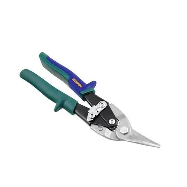 The Irwin Tools 2073112 - Aviation Snip, Compound Leverage, Cuts Right and Straight feature hot-drop forged steel blades for a sharper cutting edge and greater strength. Ergonomically designed ProTouch Grips and long-life spring increase leverage and optimize each cut. The Aviation snips have multiple pivot pins that provide compound cutting action. The serated cuttign edges help hold the material while cutting for reduced slipage and longer cuts.