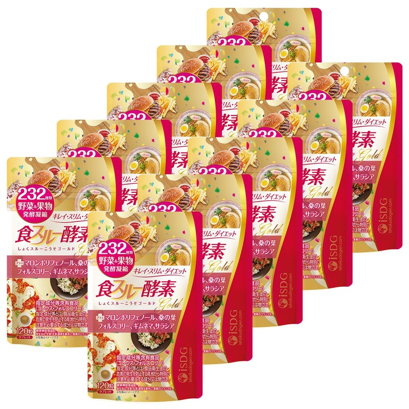 ISDG 食スルー酵素 Gold 酵素 野菜 サプリメント 232種類の天然野菜と果物 マロンポリフェノール 桑の葉 コレウスフォルスコリ ギムネマ・シルベスタ サラシア 配合 ダイエット サプリメント 食物繊維 消化酵素 国内製造 120粒 30日分(10個セット)