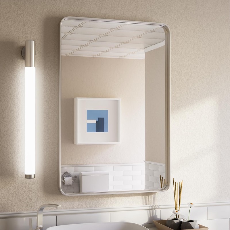 ISKM Silver Framed Mirror for Wall 20"x 30", Bathroom Vanity Mirror Anti-Rust, Tempered Glass, Rounded Rectangle Mirror(Horizontal/Vertical)