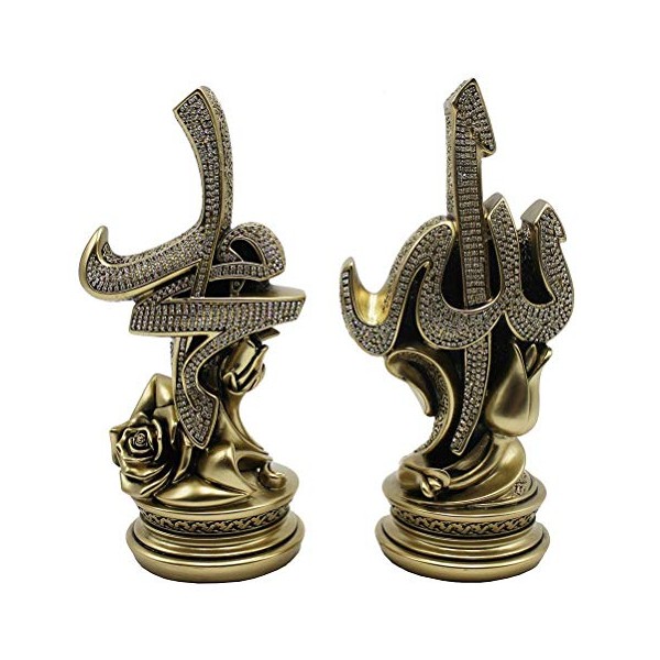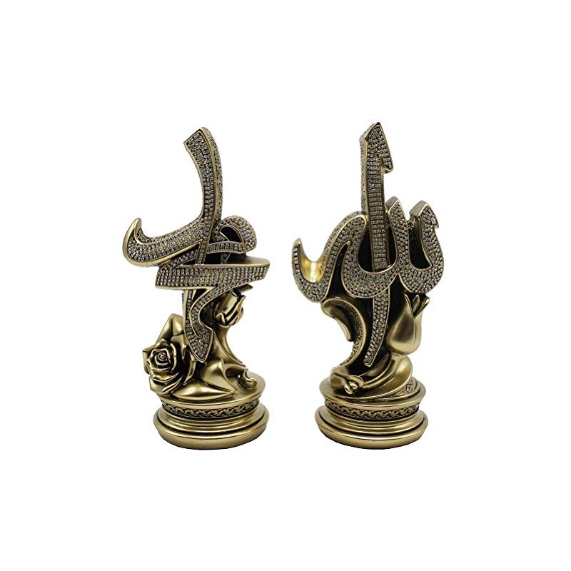 Islamic Gift Table Decor 2 Piece Set Sculptures Bookends Arabic Allah Muhammad (Gold, 12 x 22cm)