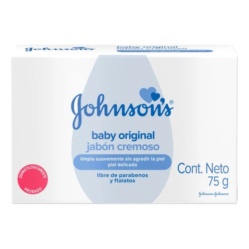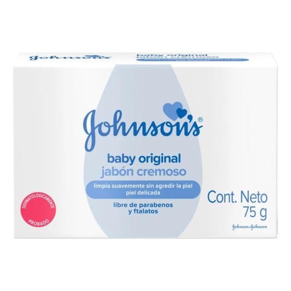 El jabón cremoso Johnson’s Original limpia suavemente sin agredir la piel delicada del bebé. Su fórmula es dermatológicamente probada que ayuda a remover hasta el 99.9% de las bacterias y deja el tradicional aroma de bebé Johnson’s después del baño. Además, es libre de parabenos y ftalatos.