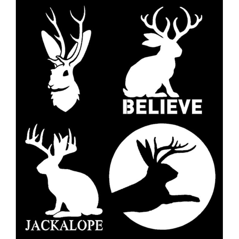 Jackalope Decal 4 Pack: Assorted Jackalope Decals (White, Small ~3.5")