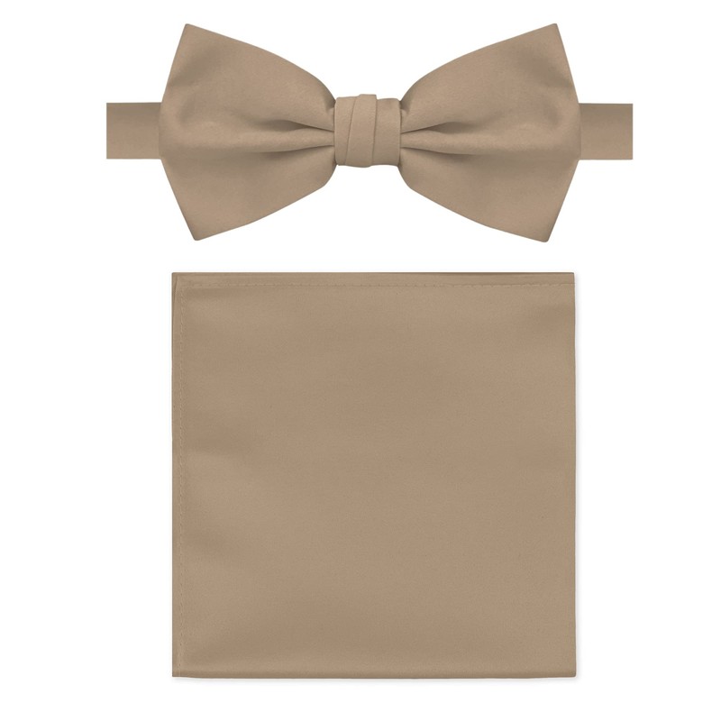Jacob Alexander Solid Color Men's Bowtie and Hanky Set - Tan