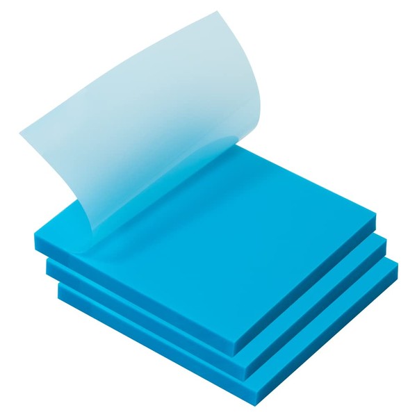 JAM PAPER Transparent Sticky Notes - Waterproof Memo Pad - 3 x 3 - Blue - 300 Sheets/Pack
