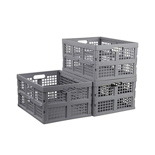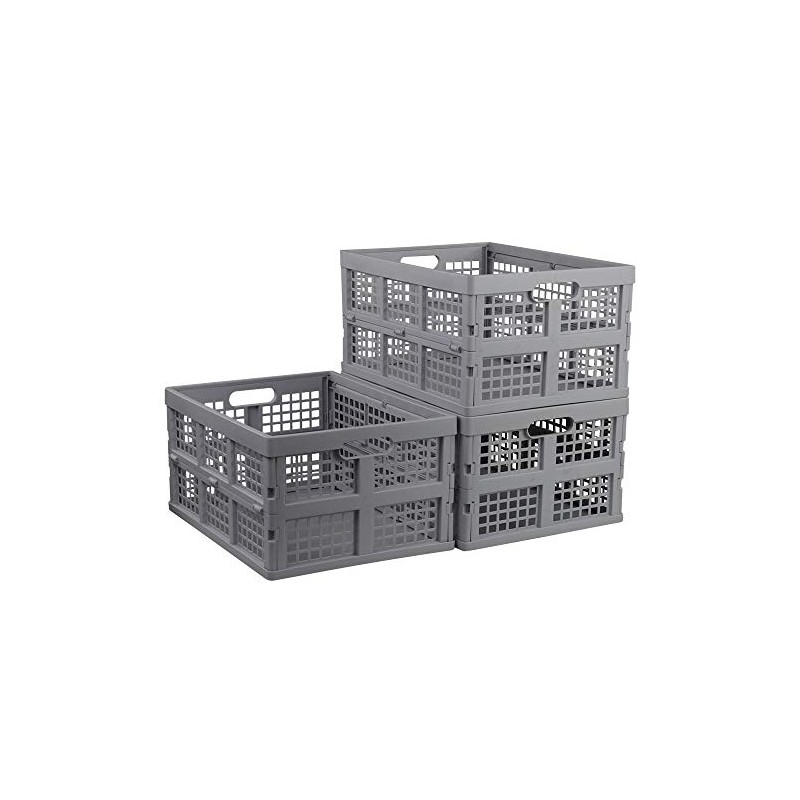 Jandson 34 Liter Grey Folding Crate, Collapsible Storage Milk Crates, 3 Packs
