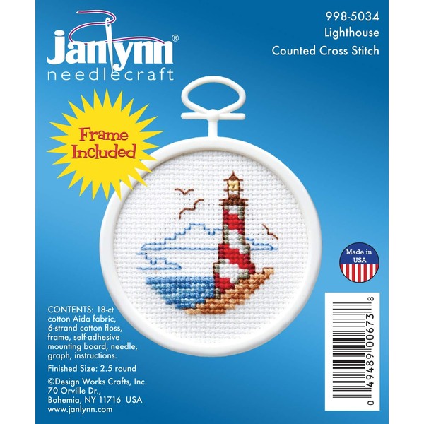 Janlynn 18 Count Round Mini Counted Cross Stitch Kit, 2-1/2-Inch, Lighthouse