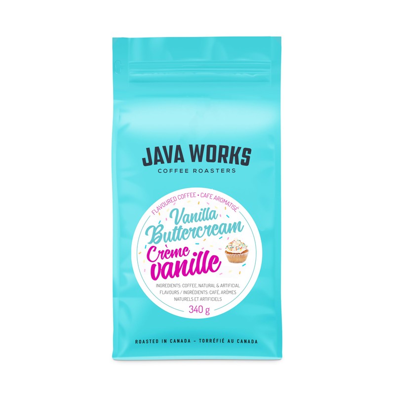 Java Works Coffee - Vanilla Buttercream Flavoured Coffee | 340 grams | Medium Roast | Whole Bean