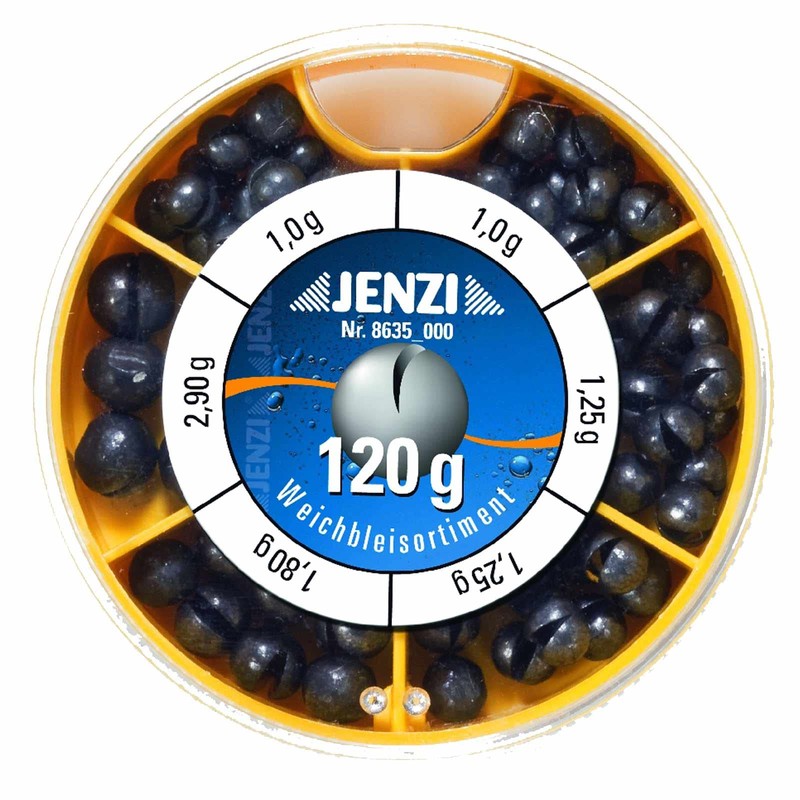The Jenzi clamping lead shot assortment 120 g coarse consists of a small, handy round box with fine clamping lead sorting (1.0 g - 2.9 g) in 6 compartments.