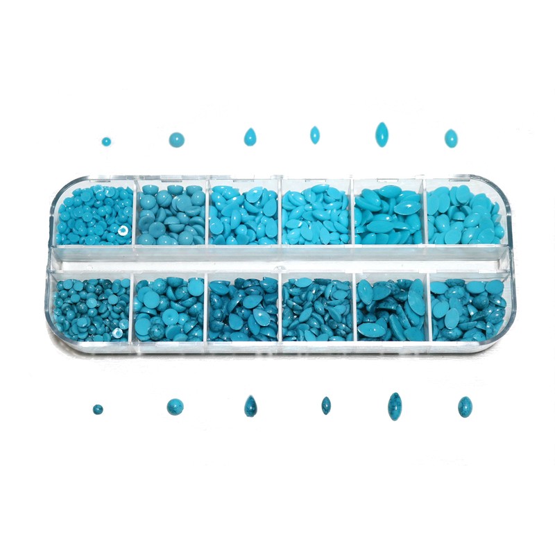 [Jewel] SK3 Assorted Turquoise Marble Pattern & Plain Set Large Capacity Approx. Grain & Nail Art Resin Rhinestone