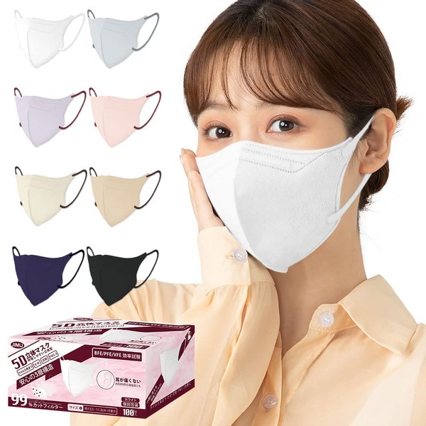 [JIMIJ] 5Dマスク 100枚入 個包装 小顔立体マスク 使い捨て 不織布 血色マスク ウイルス飛沫対策 通気快適 普通サイズ 息しやすい 耳が痛くなりにくい 花粉症対策 ホワイト