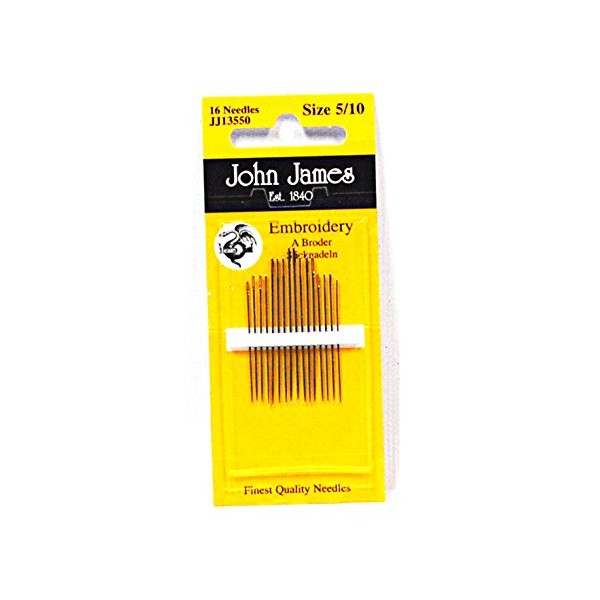 - John James Needle Crewel/Embroidery have a longer eye which makes them ideal for threading stranded cotton. Apart from this, they are the same in length and point as ordinary sewing needles. These wonderful needles are double copper-plus-nickel plated to prevent tarnishing.