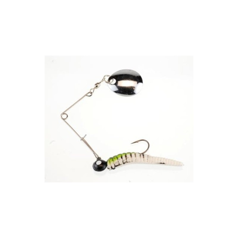 - Its brightly colored safety-pin spinner is easily removed for a plain jig presentation
