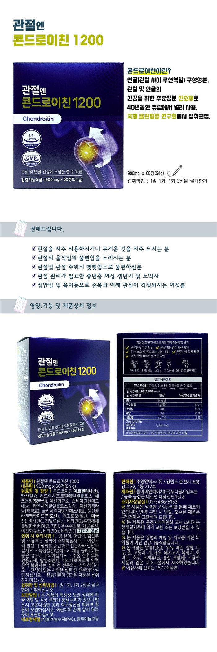 Joint Enchondroitin 1200-900mg x 60 tablets 4 boxes dn / 관절엔콘드로이친1200900mgx60정4박스dn