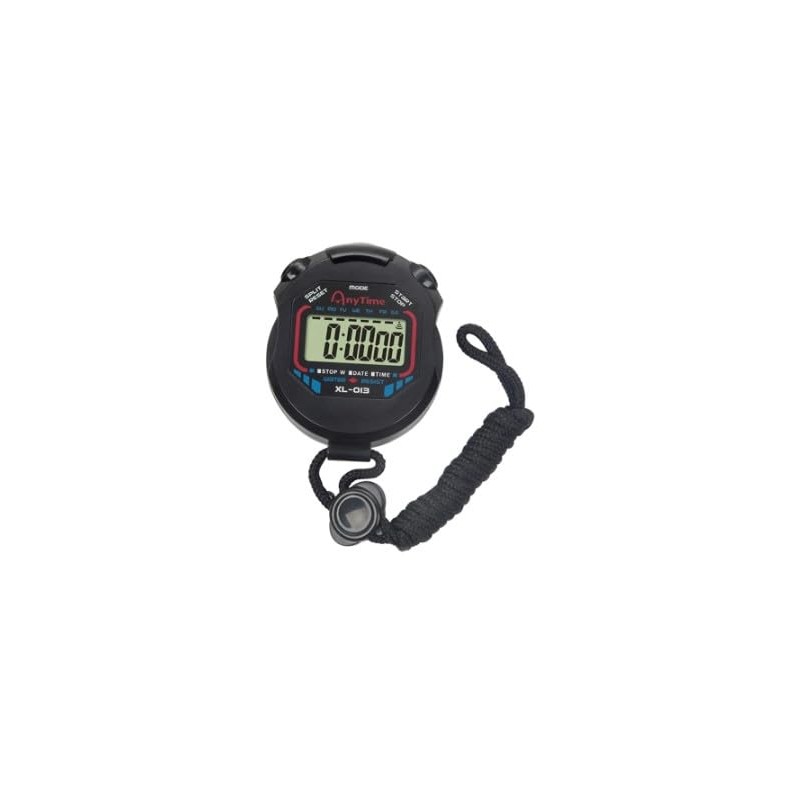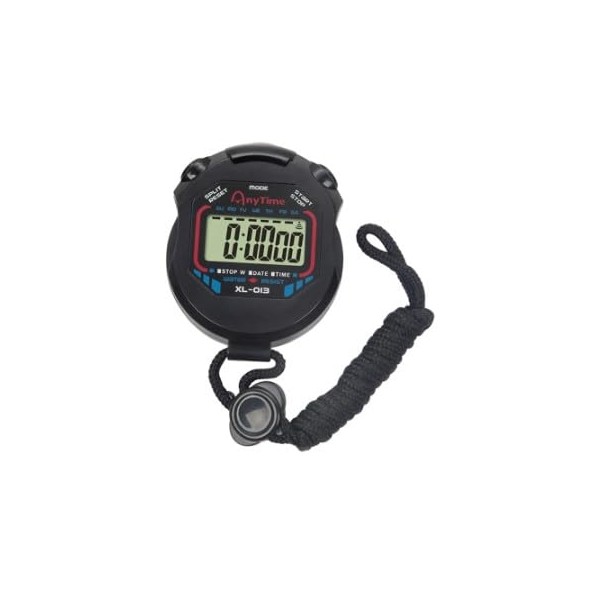 Multi-functional stopwatch displays hour, minute, second, AM/PM, month, day and more.