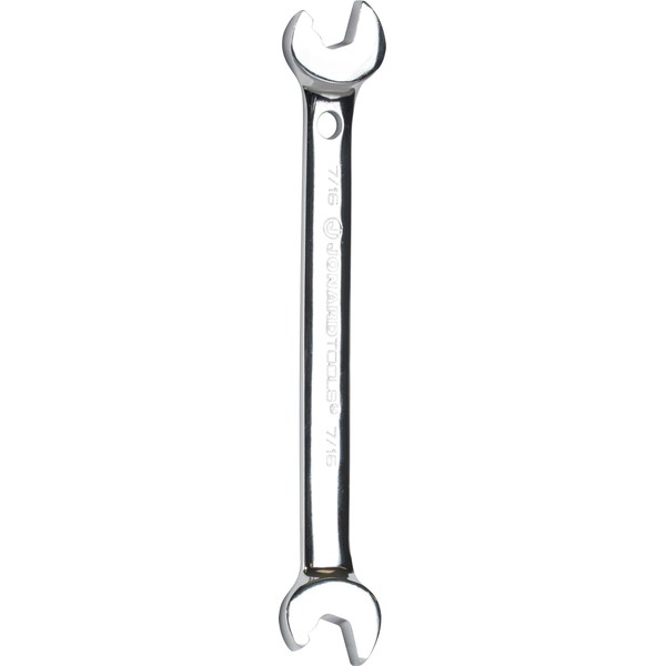 Designed for use on 7/16” F connectors, nuts, and bolts, this patented angled speed wrench makes tightening and loosening quick and easy. This speed wrench features the following: - Patented open-ended 15° angled head allows easy access to connectors, nuts, and bolts - Double ended design allows one end of the wrench to tighten while the other can loosen - Made of chrome plated vanadium steel for maximum strength and durability - Belt loop hole for convenient storage and transportation