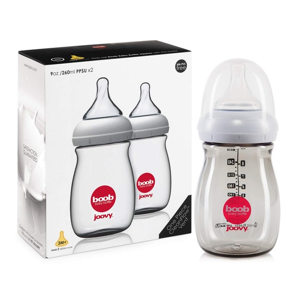 Joovy Boob PPSU Bottle, Grey, 9 Ounce, 2 count
