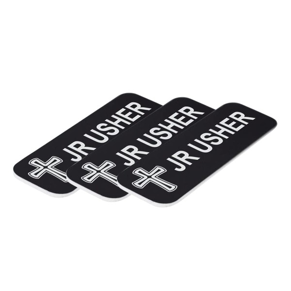 Jr Usher 1 x 3" Name Tag/Badge, Black, Cross Design (3 Pack)