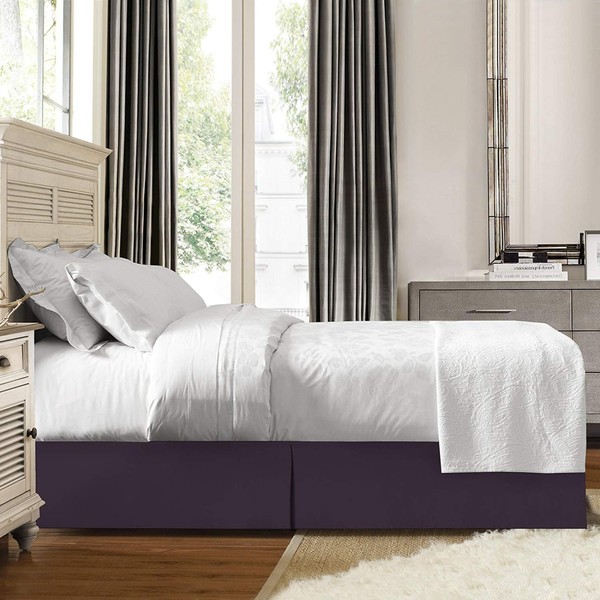 JS Sanders Solid Bedskirt Queen Size, Eggplant (Purple)